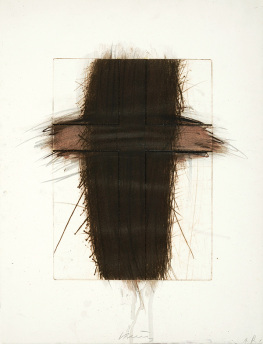 Arnulf Rainer, Kreuz, ca. 1990. Watercolour, crayon and pencil over etching, 65.4 x 50 cm.